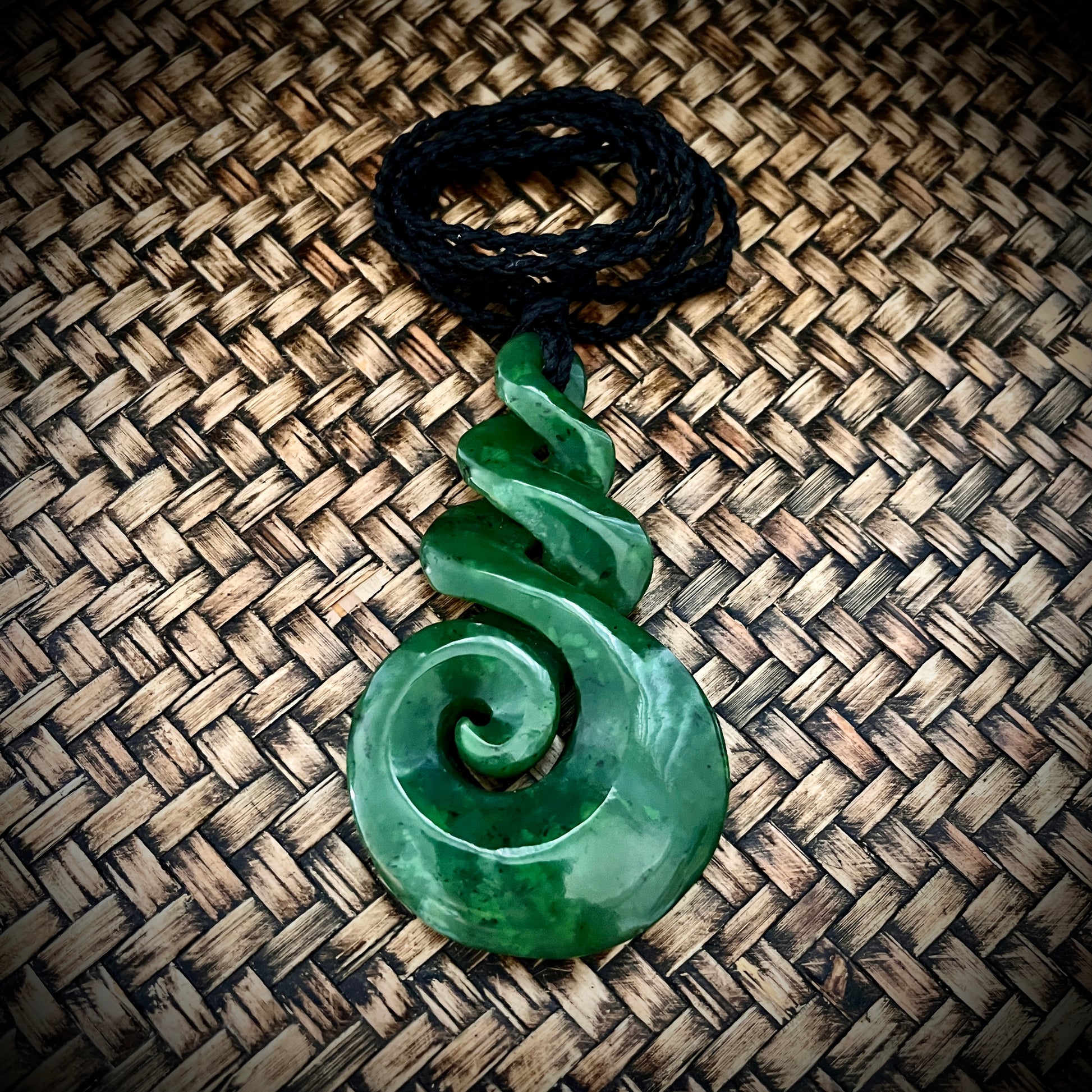 Each pendant has its own natural colouring and stone patterning — from deep forest greens to lighter jade tones with unique natural inclusions — giving every piece its own personality and presence. Smoothly polished with a solid, weighty feel, these are statement taonga made to be worn daily or gifted with meaning.