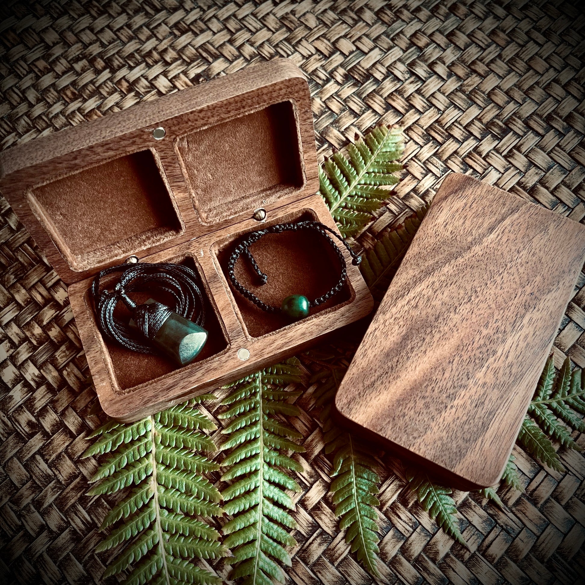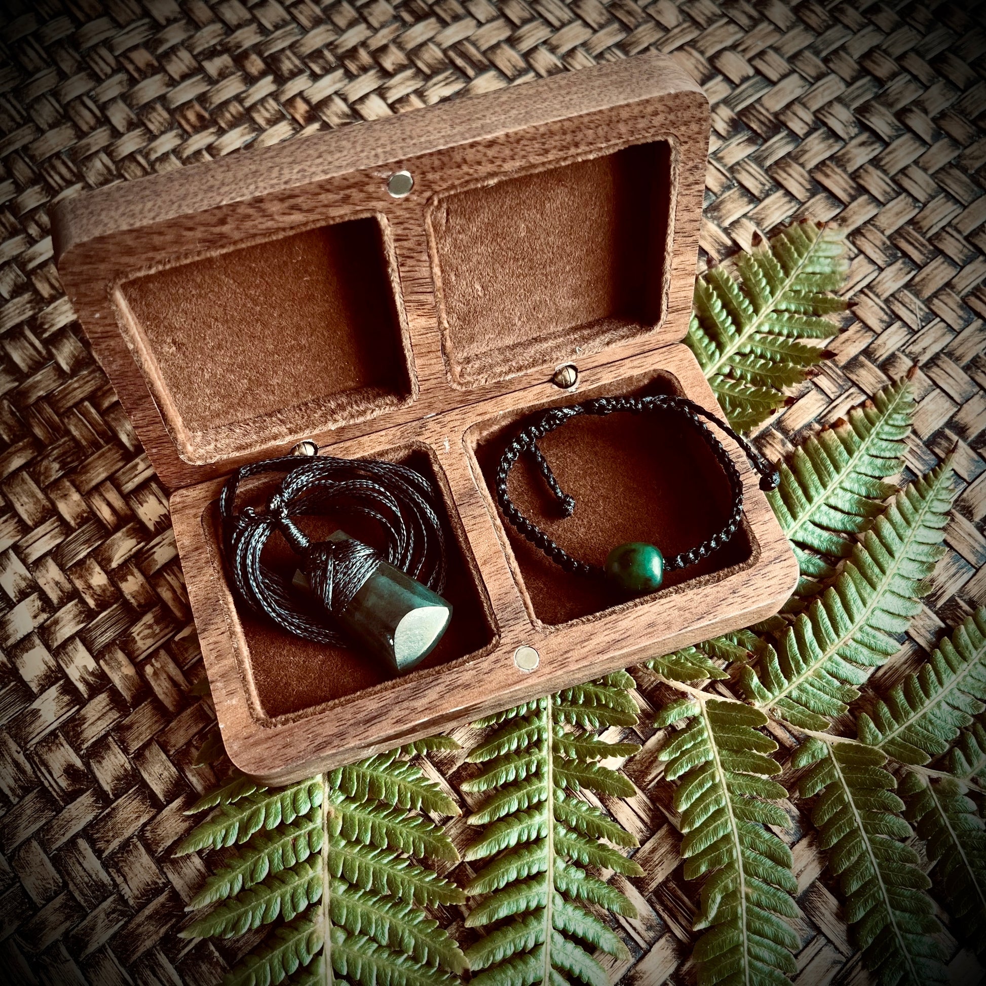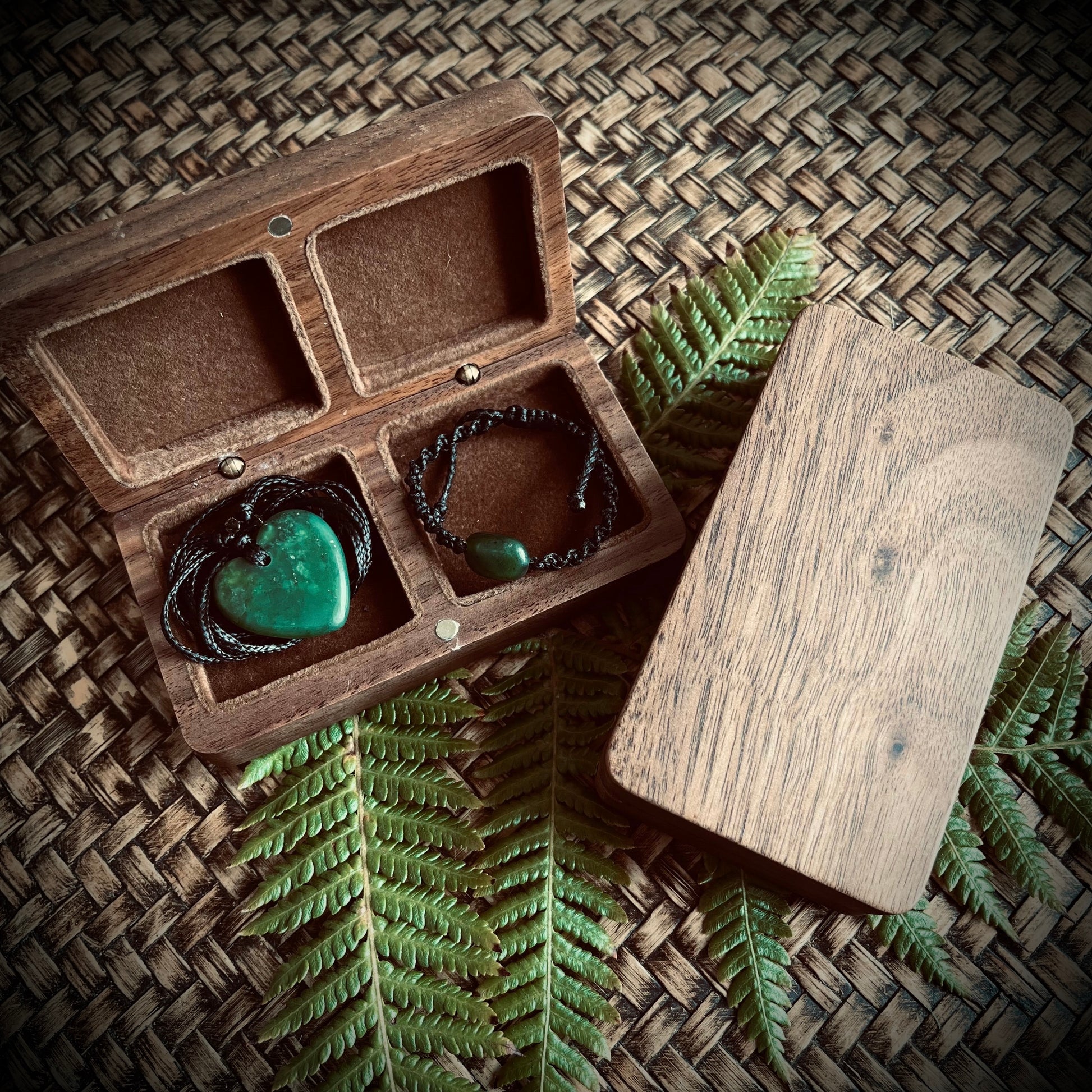The Pepi~koha~gift pack includes a Greenstone bracelet and pendant, perfect for children aged 0-5 years old. The bracelet can fit most children up to 5 years old and the pendant comes in either the Pēpi Toki (3cm) design or the greenstone (3.0cm) Heart design. The set also comes in a beautiful wooden trinket gift box.