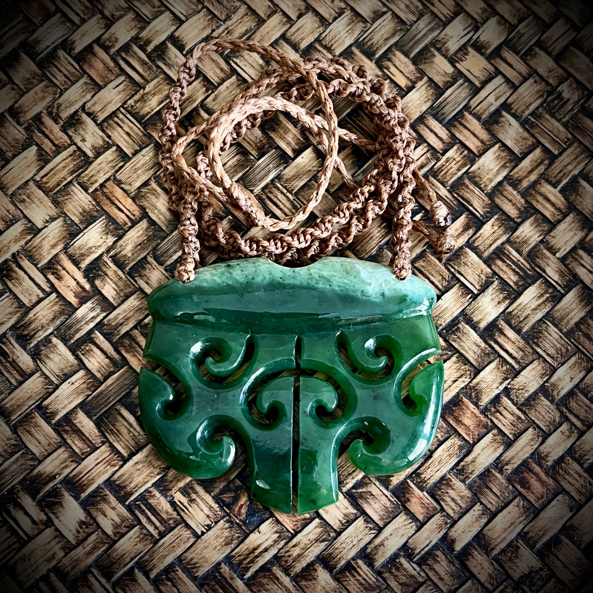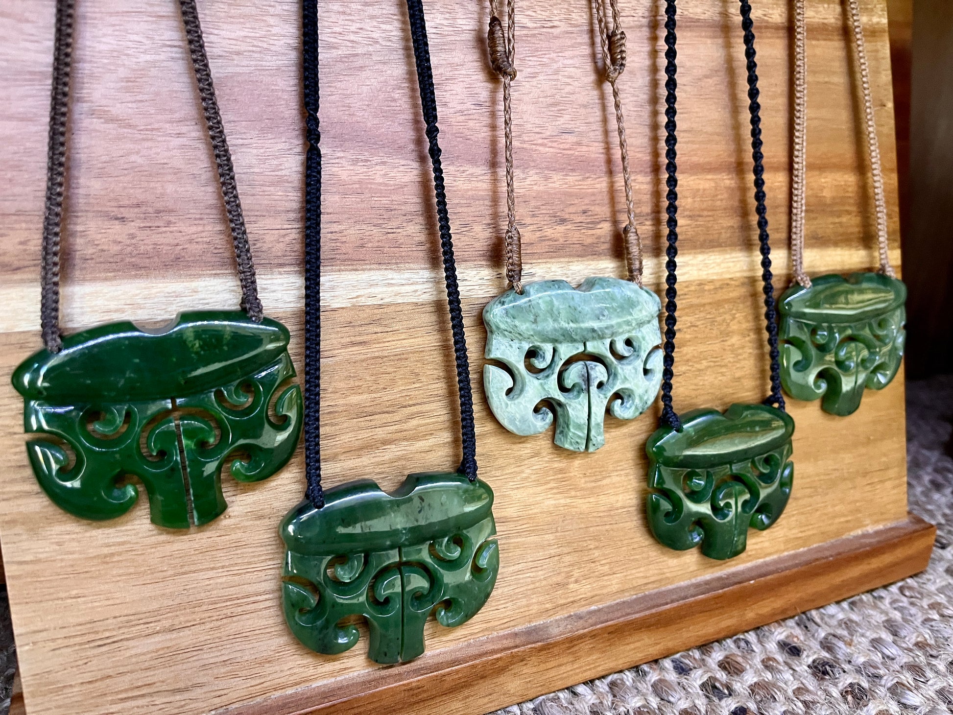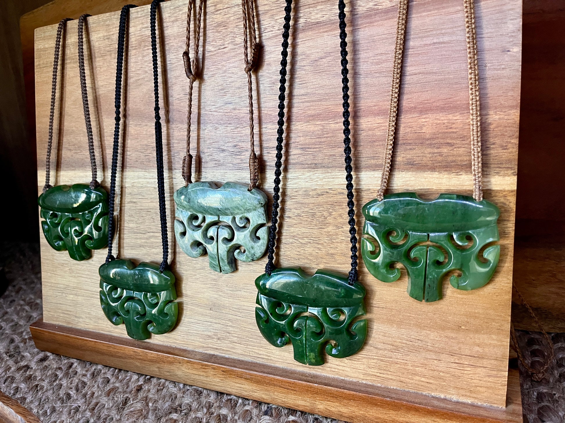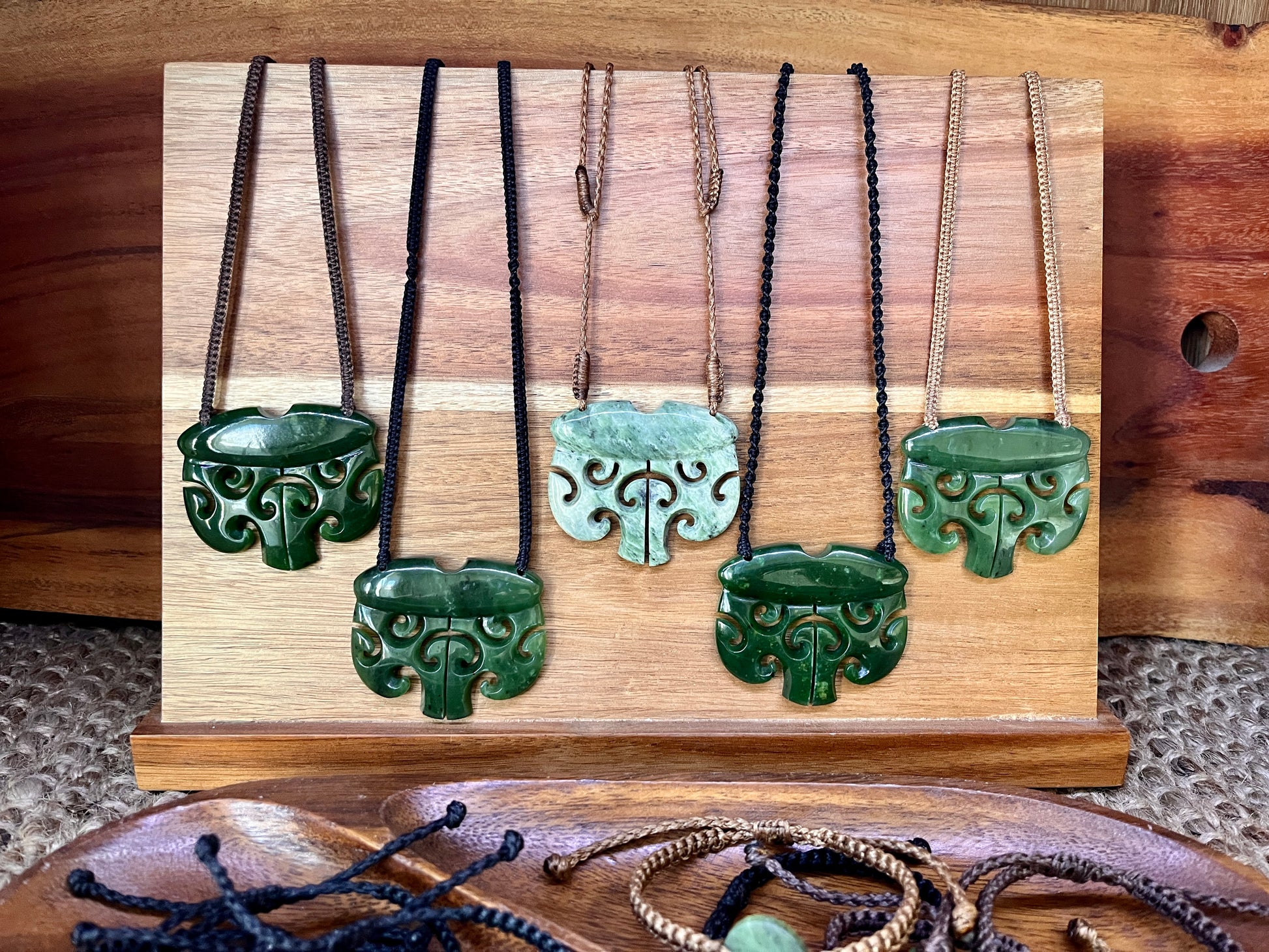 These handcrafted Moko Kauae necklaces are made from genuine Pounamu (New Zealand Greenstone) and feature the Moko Kauae design — a powerful symbol of strength, identity, and empowerment for Wahine (women).
