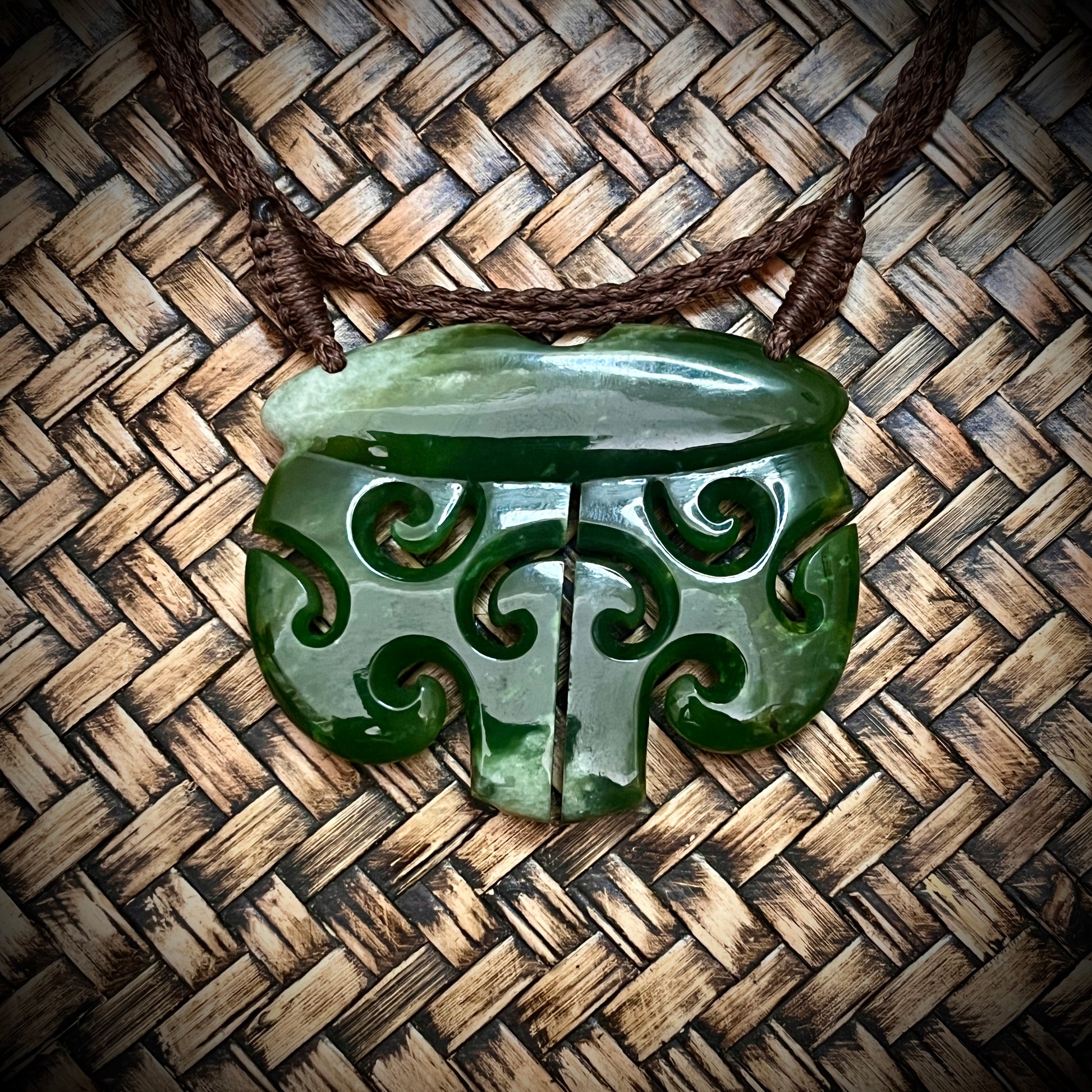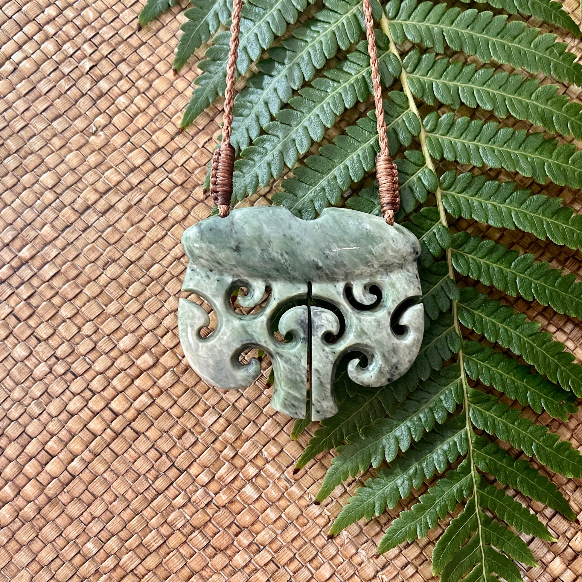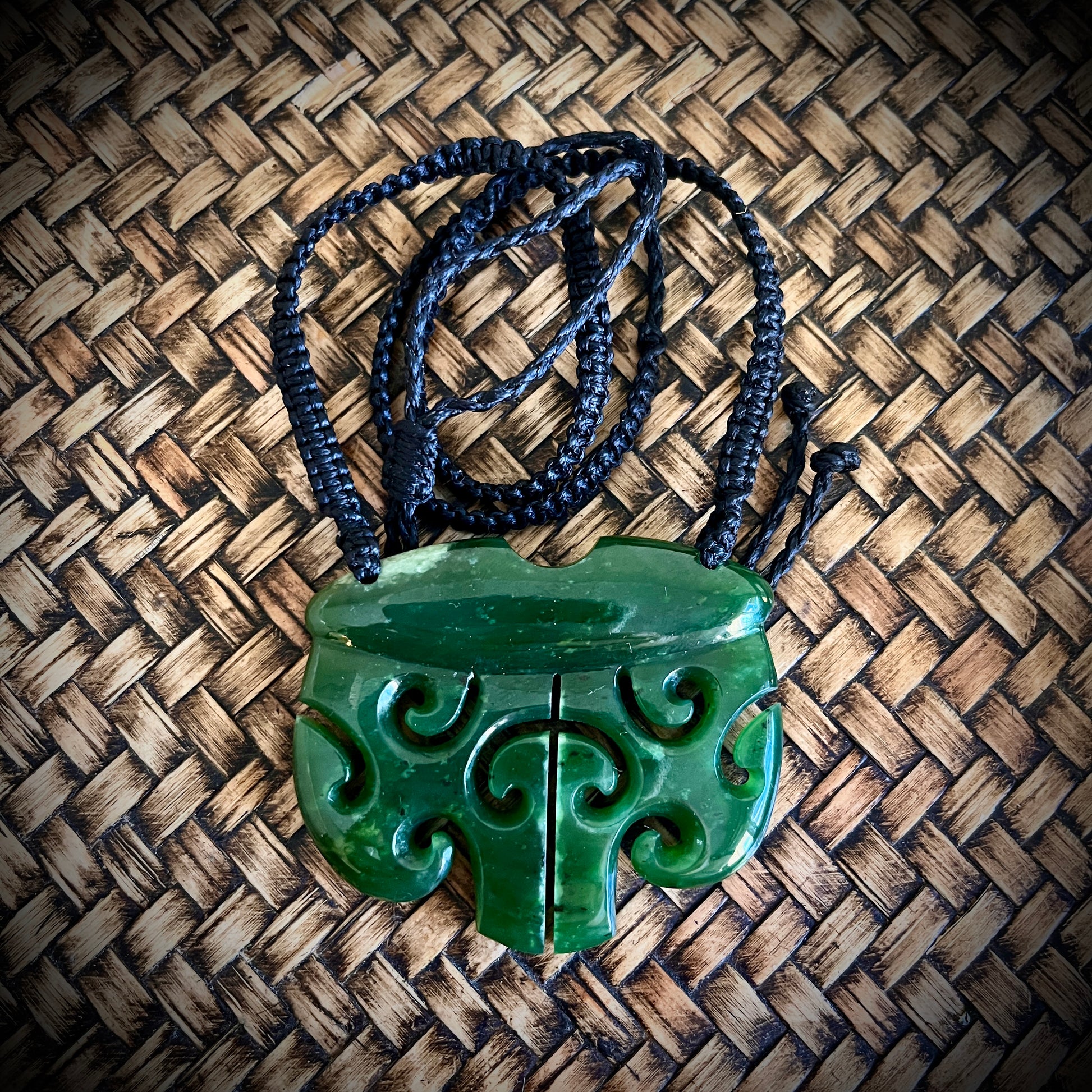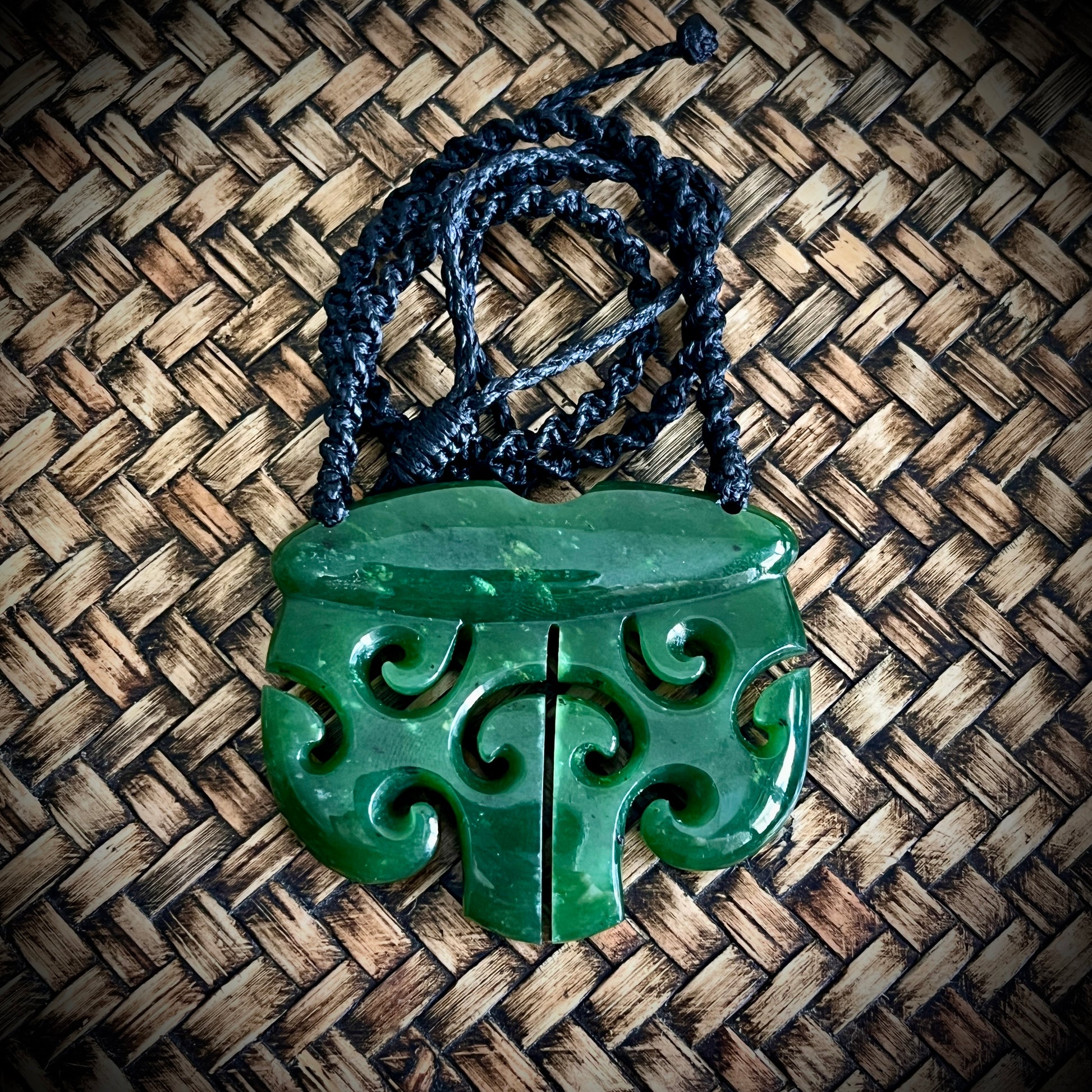 These handcrafted Moko Kauae necklaces are made from genuine Pounamu (New Zealand Greenstone) and feature the Moko Kauae design — a powerful symbol of strength, identity, and empowerment for Wahine (women).
